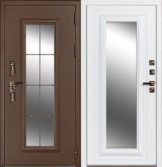 толщина 115 мм. терморазрыв обеспечивается наличием изоляционного слоя с низкой теплопроводностью, Двухсторонний окрас; внешний цвет: Муар с разноцветными блесками темно коричневый + цинкогрунтовочный слой, внутренний цвет шагрень белая + цинкогрунтовочный слой порошково-полимерное покрытие;